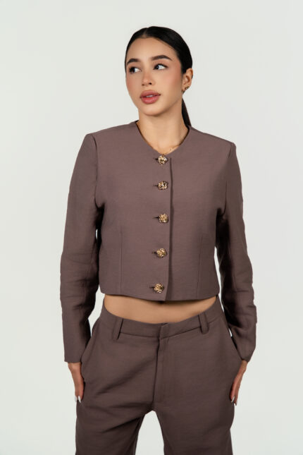 Ref.111: Set Blazer Corto y Pantalón Bota Recta – Taupe