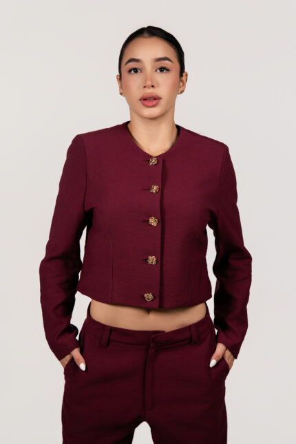 Ref.111: Set Blazer Corto y Pantalón Bota Recta – Vinotinto