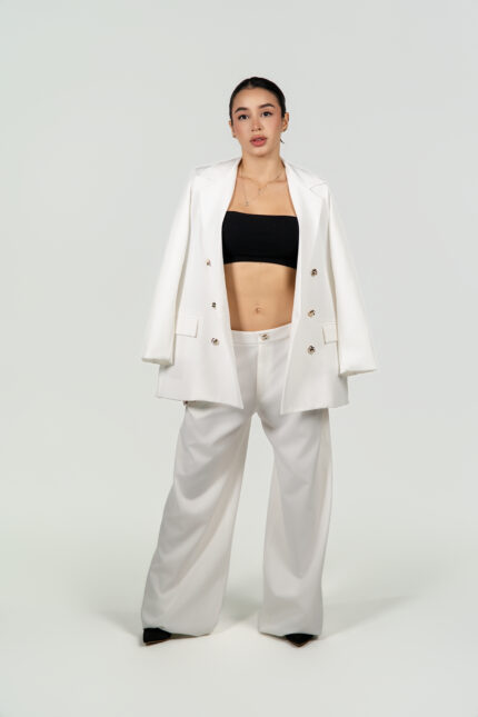 Ref.107: Blazer Semioversize y Pantalón Recto con Prenses- Vainilla