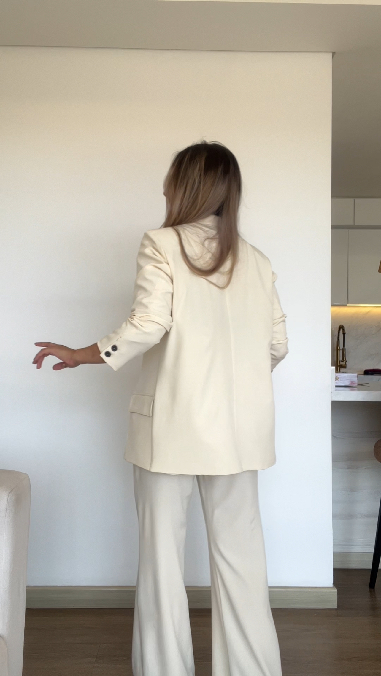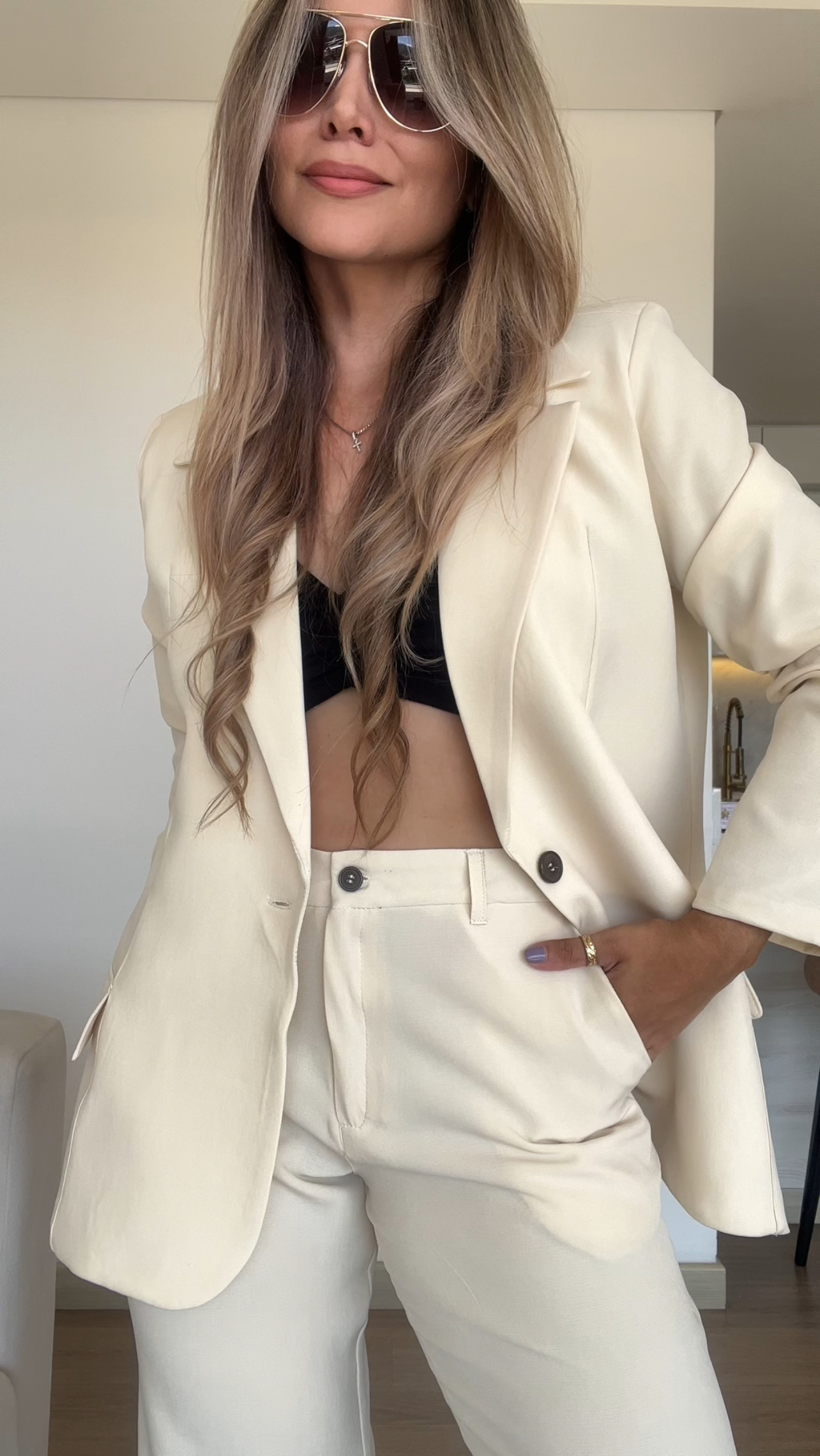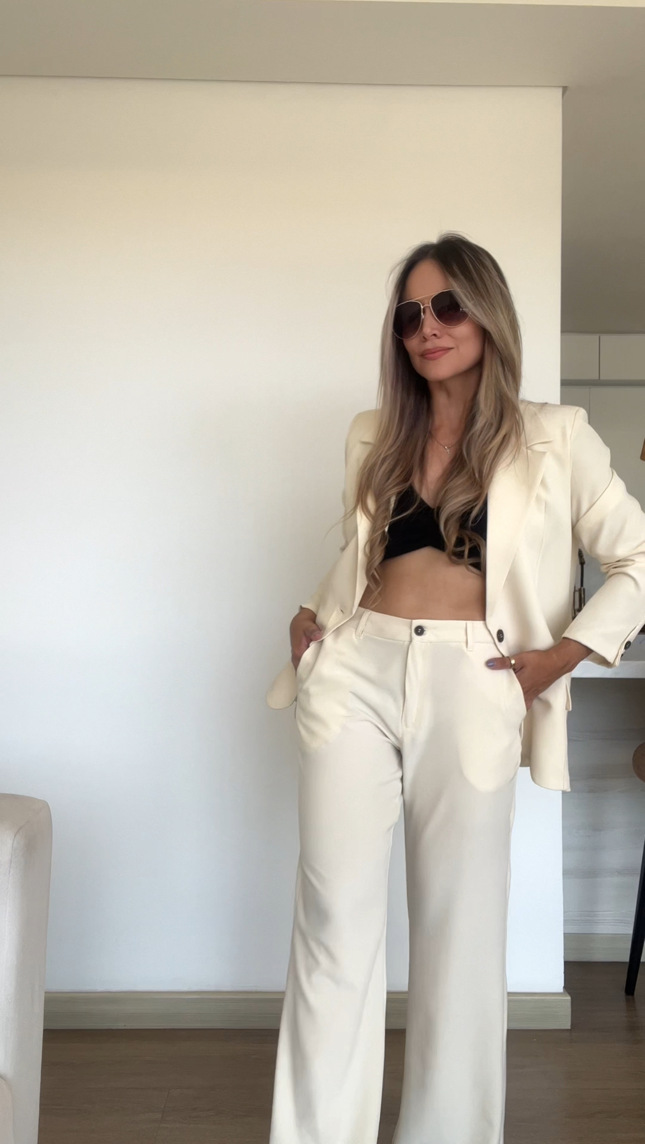 Ref. 088: Set Veraniego: Blazer Redondeado y pantalón semicampana-Vainilla