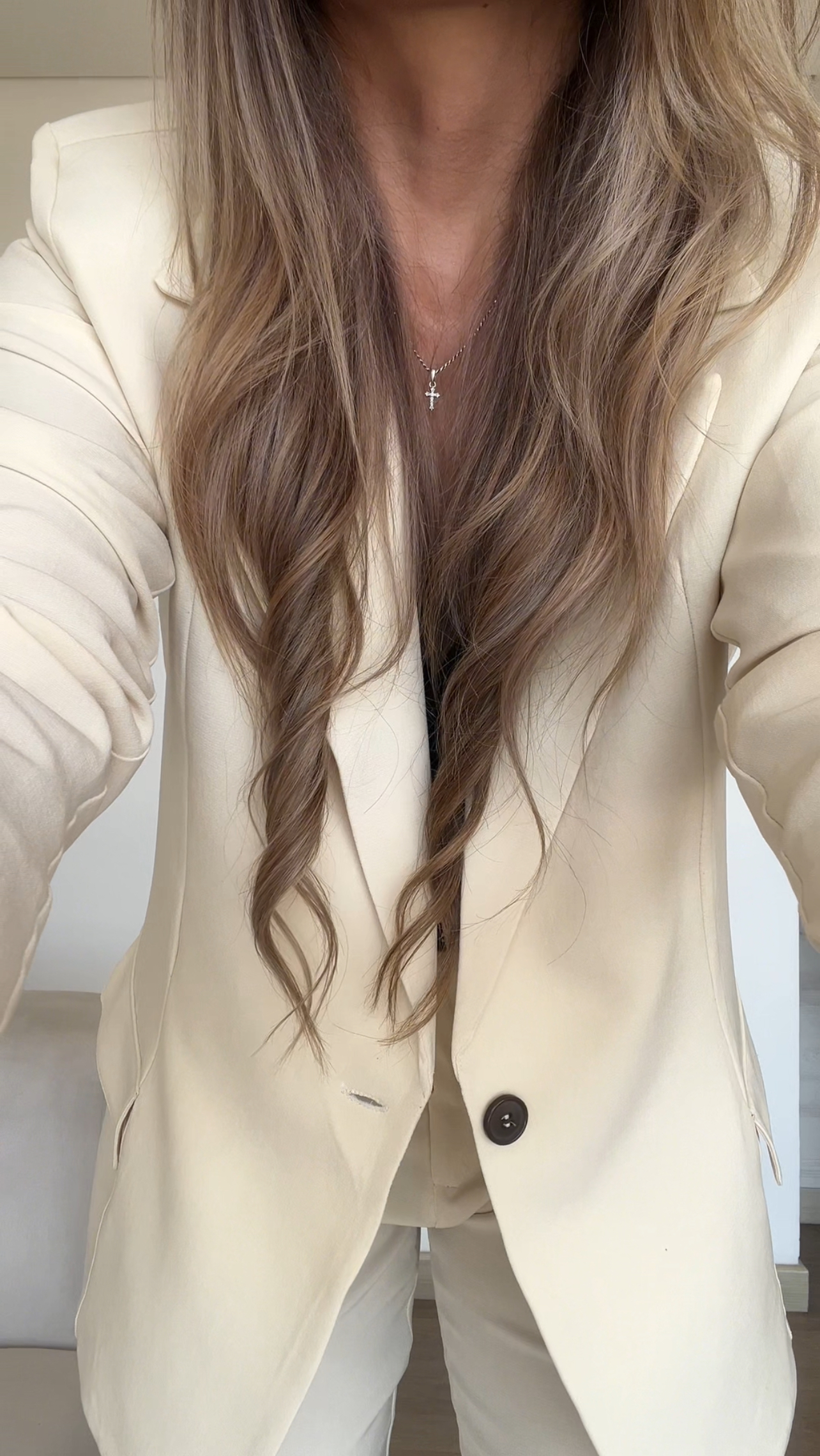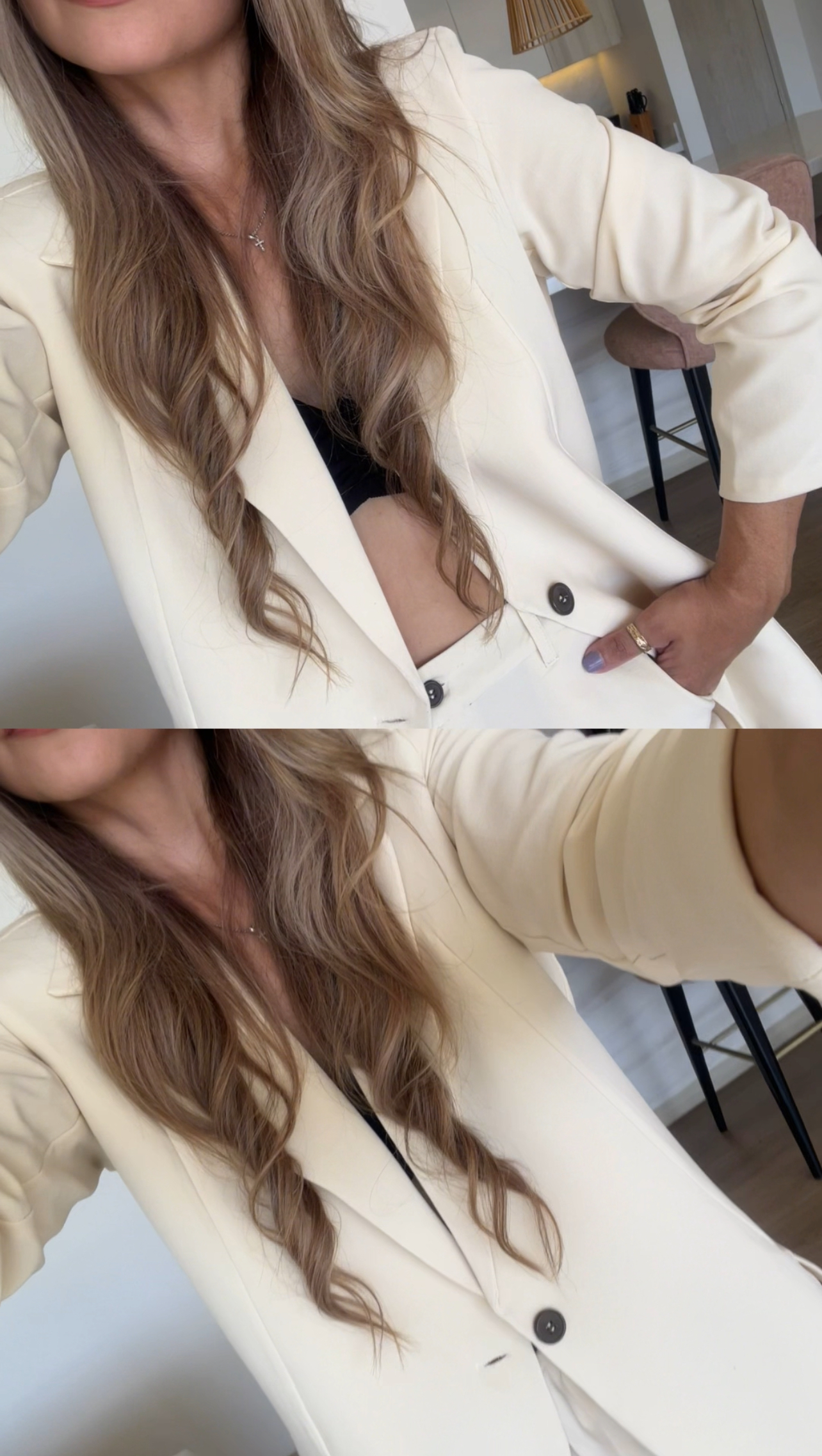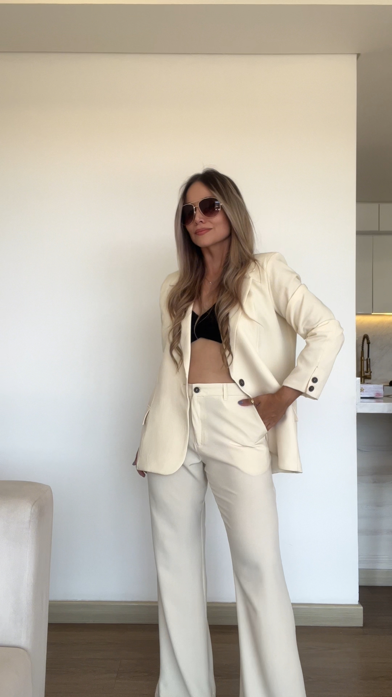Ref. 088: Set Veraniego: Blazer Redondeado y pantalón semicampana-Vainilla