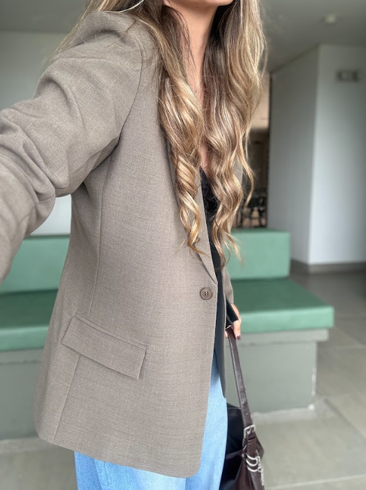 Blazer de corte semi oversize en tono berenjena, con un diseño estructurado que combina elegancia y modernidad. Presenta solapa clásica, cierre frontal con botón y bolsillos de tapa que aportan un acabado sofisticado. En la parte posterior, incorpora un detalle distintivo de botones alineados que elevan la prenda con un toque único y diferencial. Su silueta ligeramente amplia permite una caída fluida que estiliza la figura y brinda comodidad. Una pieza versátil, ideal para looks formales o para darle un giro elegante a outfits más casuales.